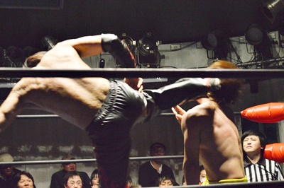 イサミエルボー、SAGATモンゴリアンチョップ、イサミもモンゴリアンチョップ(右写真)。