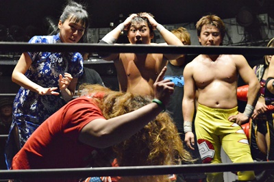 イサミが「今日は闘ったけど、UWAタッグのパートナーだ」と握手(右写真)。
