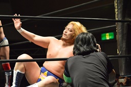 スピニングトーホールド(左写真)、宮本がカット。テイオーは福田にタッチ。