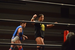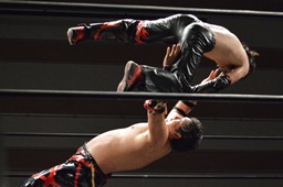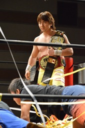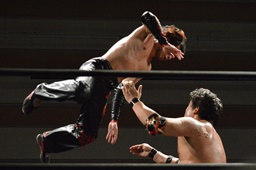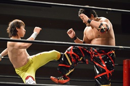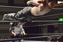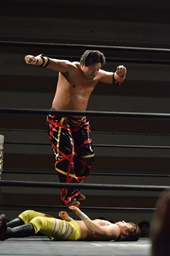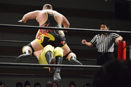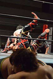 イサミコーナーからダイビングクロスボディ(左写真)、