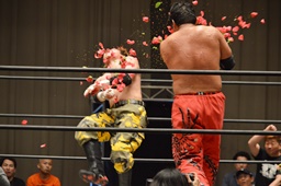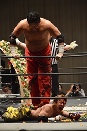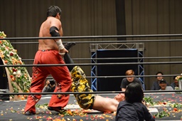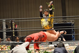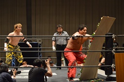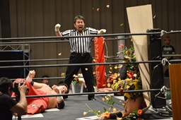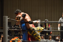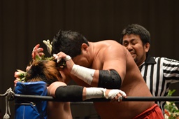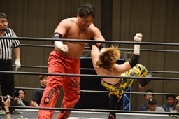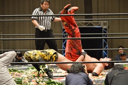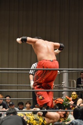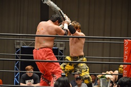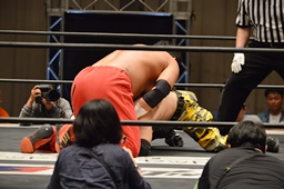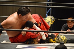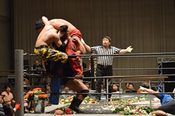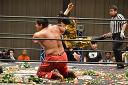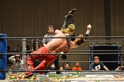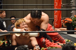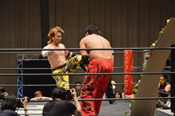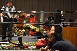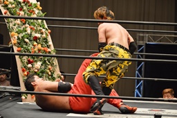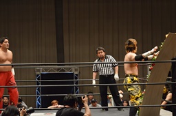 FUMAジャーマン(右写真)、カウント2。