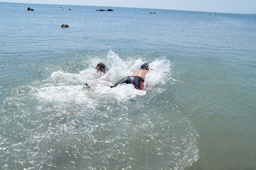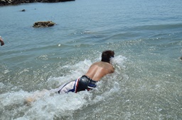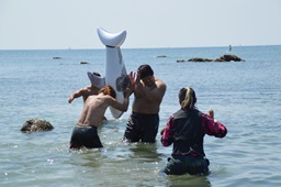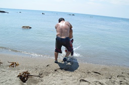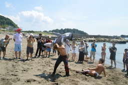 イサミ浜に戻るとシャチを振りかぶって「バーバラーババッババラババーバーバー」(左写真)。5分経過。