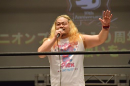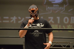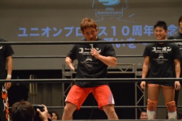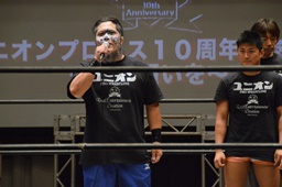 木イサミ「ユニオンプロレスファンのみなさん、ありがとうございます!あー、泣かないって決めてたのに。笑いましょう!まだ終わってないです。最後に締めが終わるまでは終わってない、まだゴールテープを切ってない、まだまだ笑っていきましょう!」(右写真)