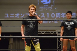 河村知哉「自分がユニオンでデビューした最後の人間です。ユニオンでデビューできてよかったです。ありがとうございました。」(右写真)