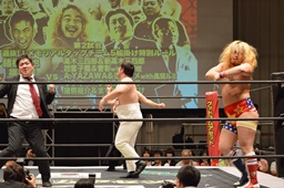 A.YAZAWAと遠藤マメがリングイン(右写真)。