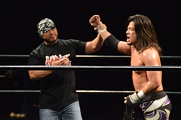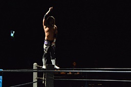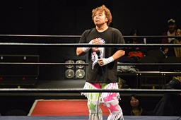 ここで休憩。「自由に告知を」という丸投げタイム。翔太がリングに(右写真)。