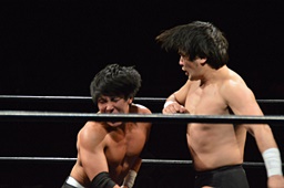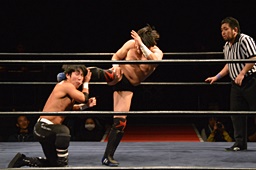 丸山ロープに飛ぶ、佐藤フランケンシュタイナー(右写真)、