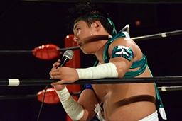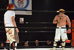塚本「2月26日、横浜ラジアントホール大会、旗揚げのときに言ったようにシングルが決まりました。僕はあなたと4年?それ以上、キャリアのほとんどであなたと対戦して、あなたから多くを学びました。でもこれは完結編じゃないし、BASARAでもあなたと闘いたいって、あなたが僕を誘ってくれた時から僕はそう思ってました。だからこのカードにはものすごく感謝しています。2月26日、とことんやり合いましょう。」(左写真)