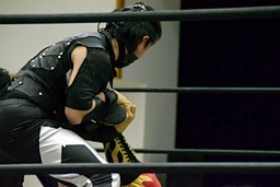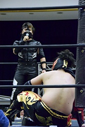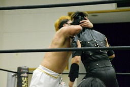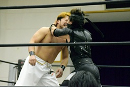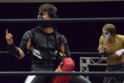 FUMAは久保をヘヴィメタル軍団に勧誘(左写真)。久保はしかし横浜での旭志織戦をインディペンデントワールド世界ジュニアヘビー級戦にしたいということを表明、返事はせず。
