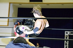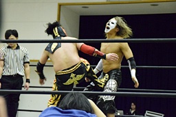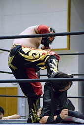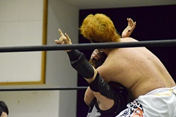 コーナーに上ってHeavy Metal Anthem、塚本かわす(右写真)。久保にタッチ。