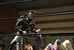 FUMAがコーナーからHeavy Metal Anthem(左写真)、カウント3。