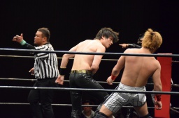 関根がFUMAを押さえ、岩本がデッドリードライヴ(右写真)。