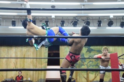 エプロンに出てスワンダイブ狙う(右写真)、