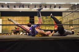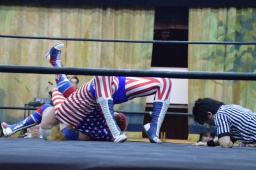 投げた!レフェリーカウント(右写真)、テイオー2で返す。