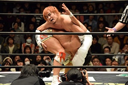 パワーボムの体勢からそのまま後方に放り投げるジャンボスープレックス(右写真)、