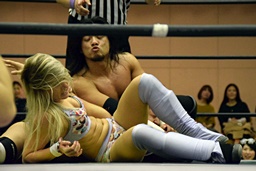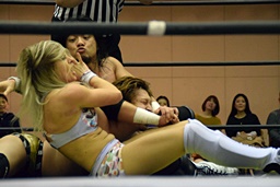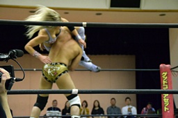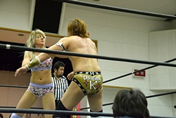 しかしキャンディスは踊り終わるとバック取って(左写真)、