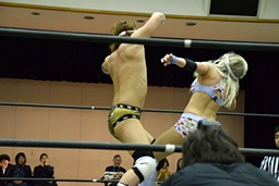 平田突っ込む、キャンディスカウンターのキック(右写真)、