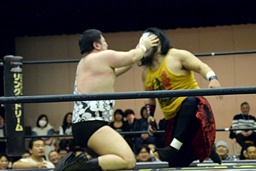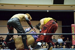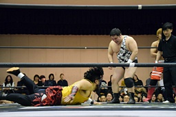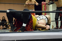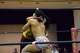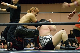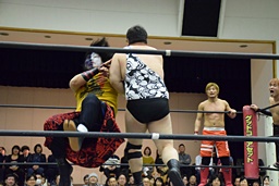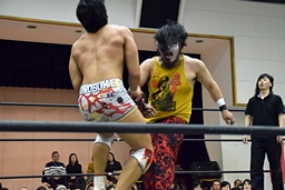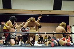 アントンと竹下がカットに入るが、SAGATがアントンにスリーパー、イサミが竹下に卍固め(左写真)、遠藤がロープ。