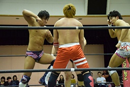 セミファイナル 木イサミ&中津良太&SAGAT vs アントーニオ本多&竹下幸之介&遠藤哲哉