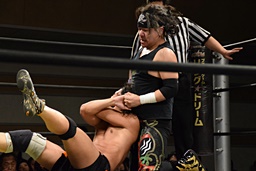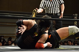 高梨エビ固め(左写真)、カウント2。