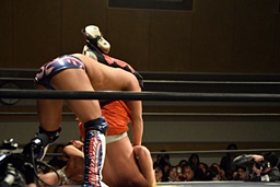 投げっぱなしパワーボム(右写真)、カウント2。