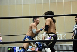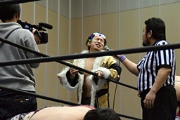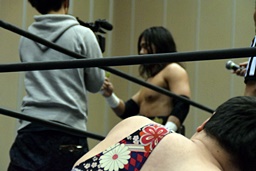 大石佐々木にパンチ連打(右写真)。10分経過。
