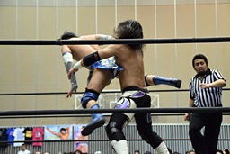 佐々木ドロップキック(左写真)。