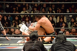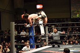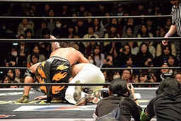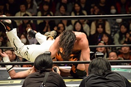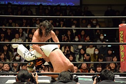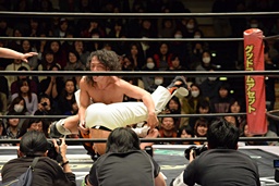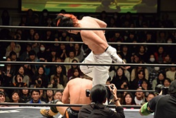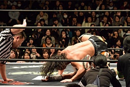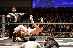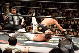 高梨途中で回転を止めて押さえ込む(右写真)、カウント2。