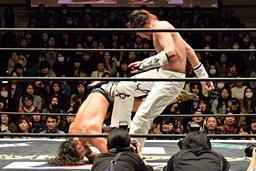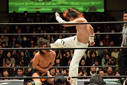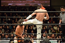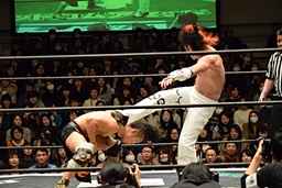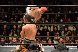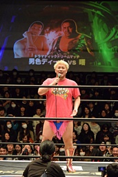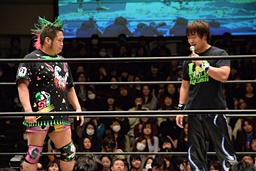 次期挑戦者決定戦、HARASHIMA vs 入江茂弘が次回2/28後楽園で行われることをGMが宣言(右写真)。
