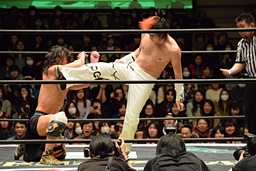 HARASHIMA「今日は入江にやられちゃったけど、これからの1ヵ月で僕はもっともっと鍛えて、2月28日は絶対に勝ちます。そして両国ではチャンピオンに勝って、この僕がチャンピオンになります!」(左写真)