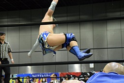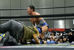 カサドーラに行くがワンチューロ途中で潰してエビ固めに(左写真)、カウント2。