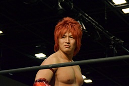 岩崎が平田に先制攻撃(左写真)、ミドルキック打ち込んでカバーに行くが高尾がカット。