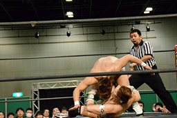 首固め(右写真)、カウント3。