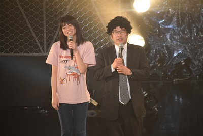 ステージで試合を見ていたオーケンも拳を振り上げて喜ぶ(右写真)。