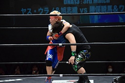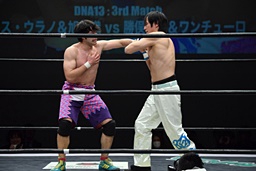 第3試合 勝俣瞬馬&ワンチューロ vs ヤス・ウラノ&旭志織