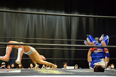 カバー合戦から両者ヘッドスプリング(左写真)。