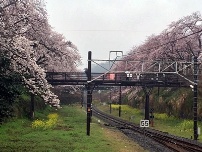 今日はDDT伊豆ぐらんぱる公園大会。その前に山北駅で花見。風邪ひいてるのに予定は変えないんだよなあ・・・。8時28分の小田急各駅で出発、成城学園で急行に乗り換え新松田へ。ちょっと歩くとJR御殿場線の松田駅。御殿場線は一切のICカードが使えないのできっぷを買って山北へ。山北駅周辺の桜はまだ満開ではなかった。