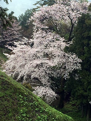 満足いかなかったので「駅から400m」と表示されていた河村城に行くことに。まあしかし「400m」とは登山口までで、そこから急な坂が。雨も降ってるし、どう考えても行くのおかしい。桜はきれいだったが。城自体は整備され過ぎかなあという感じ。行きやすい、雨でも歩きやすいのはいいけど、もとあったのを壊してまでの整備はなあ。