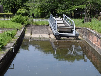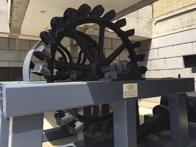 琵琶湖疏水博物館(無料)に入る。歯車。入口には水飲み器。うまい。