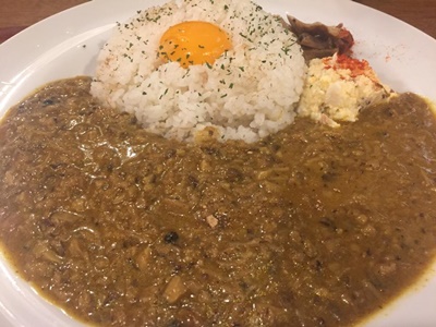 終了後福島まで戻り「般°若」でこの秋限定「大人の茸のキーマカレー」食べる。1300円。うまい。