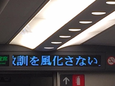 20時前に終了、大正駅から環状線に乗ったつもりだったが、逆方向(天王寺方面快速)だった。アブねえ。新今宮で降りて御堂筋線に乗り換え事なきを得る。早い新幹線に変えようと思ったが当然窓際が空いてないので予定通りの21時23分発ののぞみ64号で帰る。夕食は近江牛食べ比べ弁当。うまい。