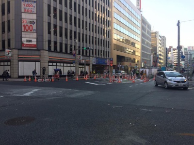先月の陥没地点を見に行く。「あの」セブンイレブンは営業してなかった。理由は不明。