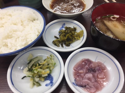 塩辛と漬物は食べ放題。塩辛と漬物は「ひらお」の方が美味いかな?