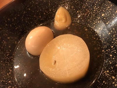 今回は一人なので「居心地」に。お通しはおでん。