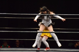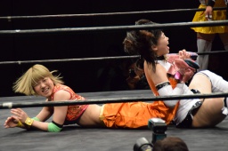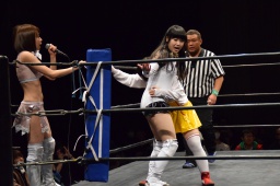 辰巳のどねえにショルダークロー(右写真)、あずにゃんにタッチ。