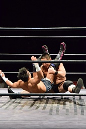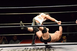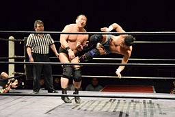 フィッシャーマンズスープレックスホールド(右写真)、これもカウント2。