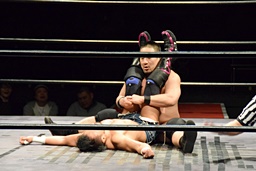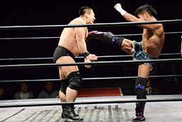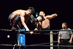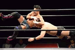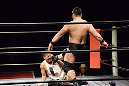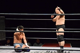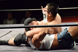 今成ヘッドロック、高木エビ固め(右写真)、カウント2。