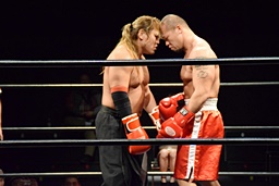 伊橋無理矢理ファイティングポーズ取らせられるが(右写真)、