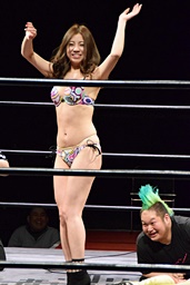 吉澤嬢はショートパンツを脱ぐ(右写真)。騒ぐセコンド陣。