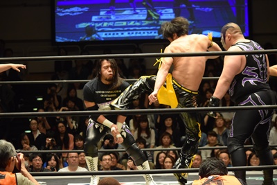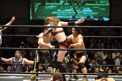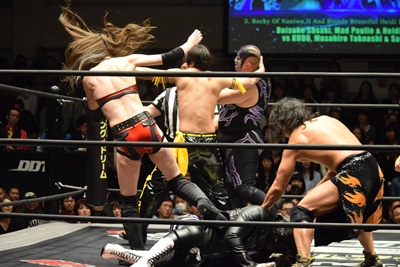 第3試合 KUDO&高梨将弘&赤井沙希 vs 佐々木大輔&マッド・ポーリー&ハイジ・カトリーナ